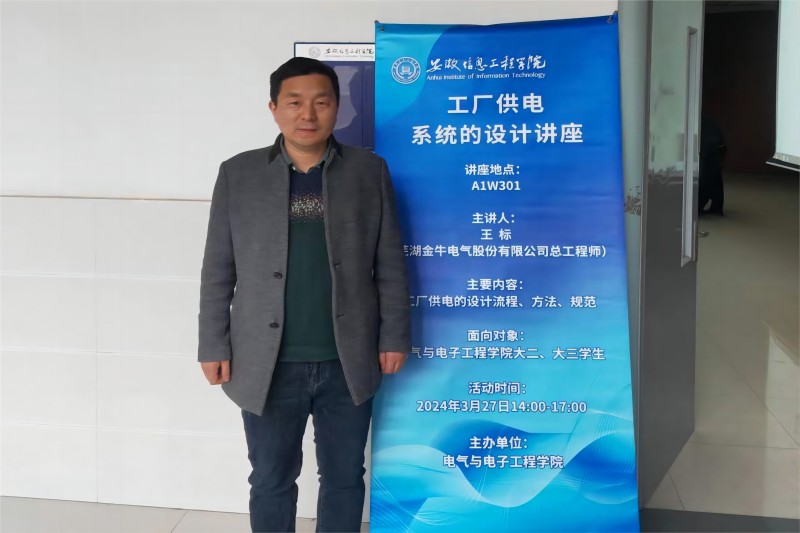 本网讯 为进一步深化产教融合,推进人才培养模式改革,提升人才培养质量,电气与电子工程学院于3月27日下午在A1W301举办了题为“工厂供电系统的设计”的专题讲座。本次活动特邀芜湖市“产业教授”、芜湖金牛电气股份有限公司总工程师担任主讲,面向电气工程及自动化专业大二、大三学生。