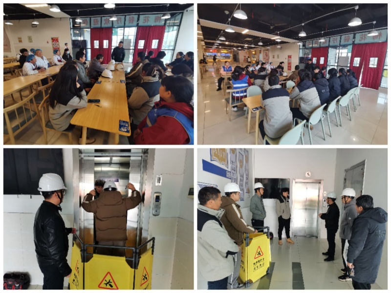 本网讯 为切实提高我校第三方服务单位的电梯使用安全意识,强化其应对电梯突发故障的应急处置能力,12月25日下午,后勤管理处组织物业公司、食堂餐饮公司以及电梯维保单位——芜湖宝达电梯工程有限责任公司,于学校陶然餐厅开展了电梯困人应急救援演练。本次演练围绕“模拟电梯困人”这一核心场景展开,设置了电梯突发停运、人员被困、紧急报警、应急响应、技术救援以及安全疏散等一系列完整流程。在电梯维保单位专业人员的悉心指导下,参演人员分组开展实战模拟,亲身体验了从报警求助直至安全脱困的整个过程。演练期间,各岗位人员反应敏捷、分工清晰、协同配合默契,切实检验了应急预案的科学性与可操作性。 演练结束后,电梯维保单位组织现场人员在陶然餐厅一楼大厅开展了一场电梯安全知识专题培训。培训中,工作人员系统地讲解了电梯的运行原理、日常安全使用规范以及乘梯禁忌,并结合典型案例,深入浅出地剖析了电梯故障发生后的正确应对步骤与自救互救技巧,有效巩固了演练成果,进一步强化了第三方维保单位工作人员的乘梯安全意识与应急处置能力。(图为